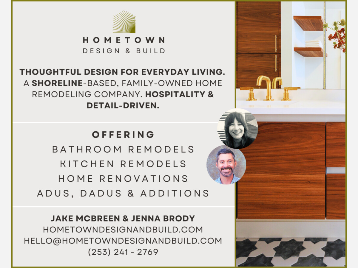 At the heart of North Seattle, Hometown Design Build is a family-owned design-and-build studio based in Shoreline, WA, led by husband-and-wife team Jake McBreen and Jenna Brody. With over a decade of combined experience in real estate, construction, and design, they bring deep expertise and a genuine personal touch to every project.