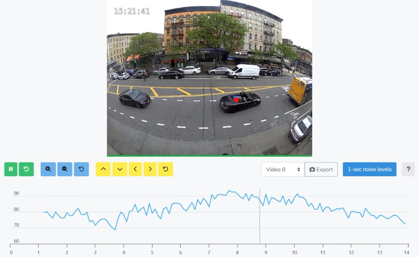One company, SoundVue, that supplies noise cameras to cities and towns, uses AI to identify the loudest vehicle or truck (tracked with a red dot in the picture below) when many are present.