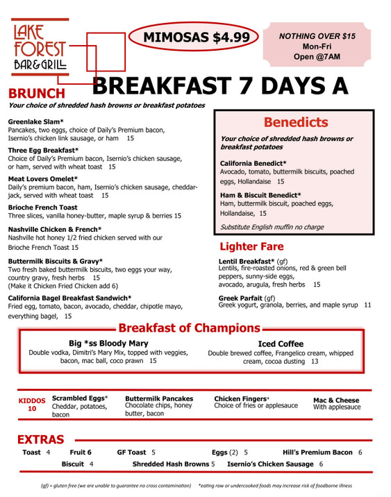 Lake Forest Bar & Grill Serving Breakfast 7 Days A Week
