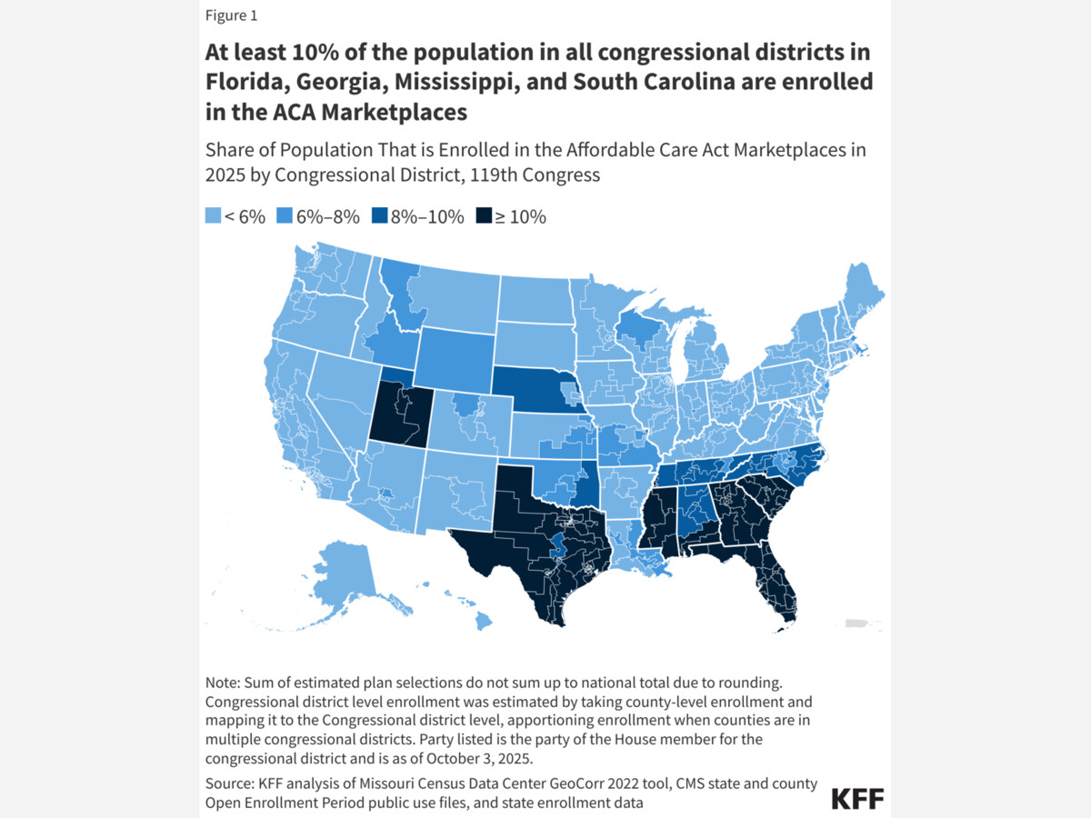 A recent KFF analysis found that 57% of ACA marketplace enrollees live in congressional districts represented by Republicans—a figure much higher than the phrase “more than half” might suggest. The data shows that large portions of the Republican electorate rely on health coverage established under a law their elected officials continue to criticize.