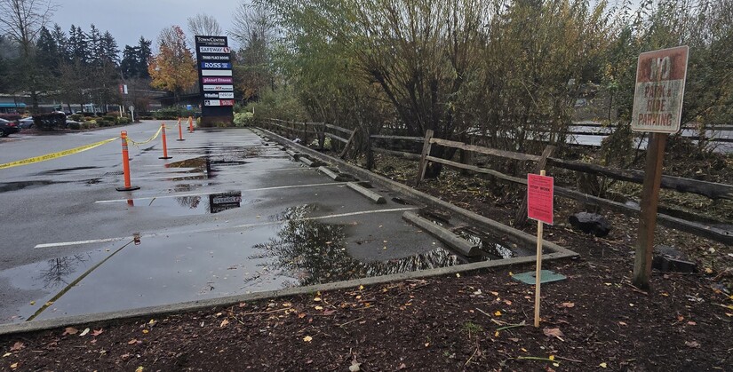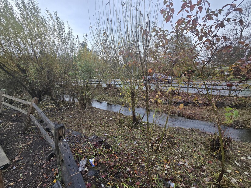According to Kim Josund, President of the LFP Stewardship Foundation, whose mission is, in part, "To protect the wetlands and watersheds of Lake Forest Park in order to restore salmon habitat and maintain the quality of riparian flora and fauna throughout the City", was notified by an alert citizen that brush clearing, trimming, cutting, etc., was occurring in the protected, sensitive area.