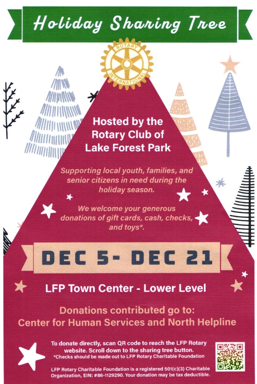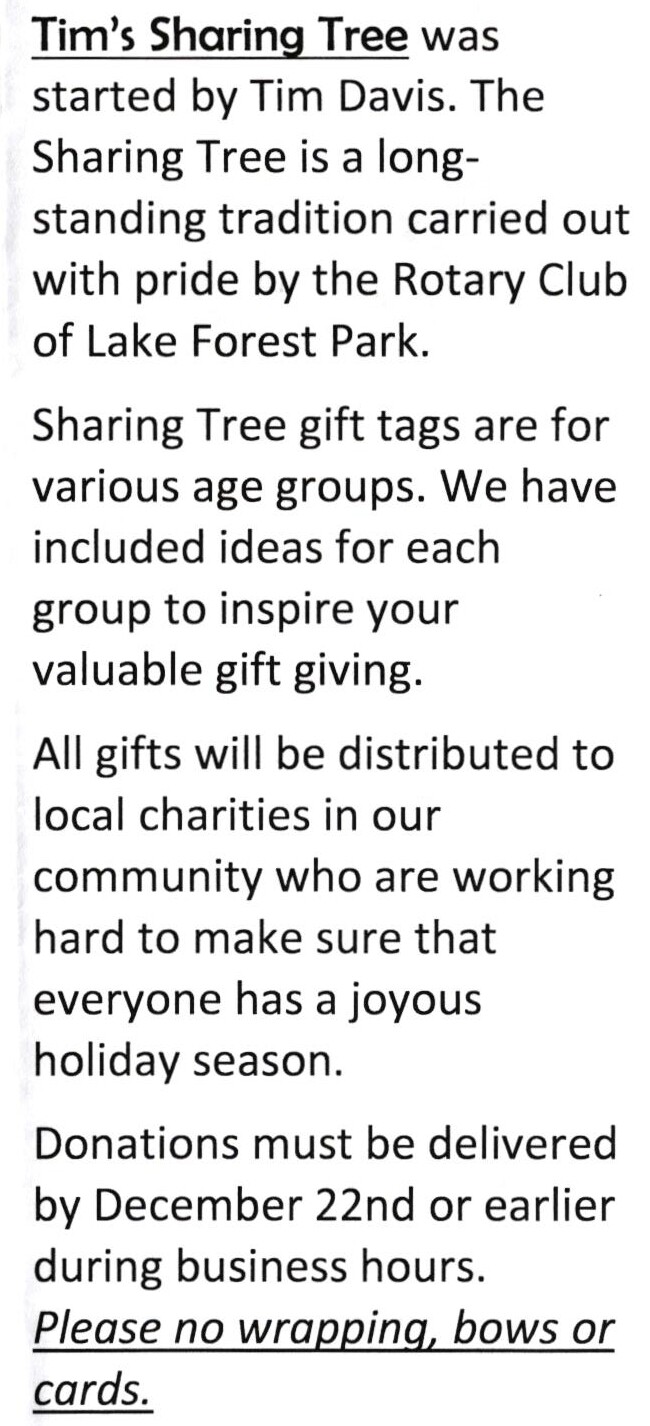 SC students Lynna (left) and Izy (right) answering questions about the Holiday Share Tree hosted by the Rotary Club of LFP