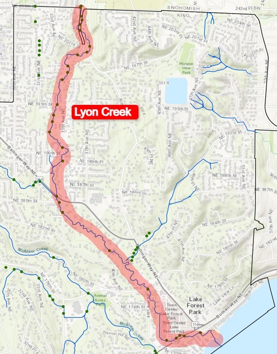 Per cityoflfp.gov - Due to a reported sewage leak localized in the northern part of Lake Forest Park near 37th Ave NE, south of NE 205th St, it is recommended that all individuals avoid contact with possibly
