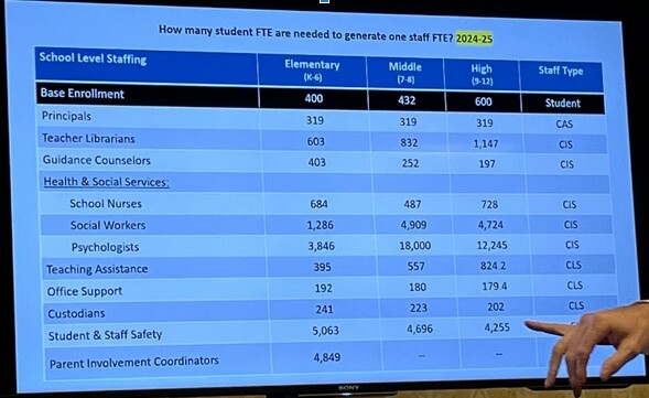 Photo credit: Malorie Larson taken at Dan Steele’s presentation (Assist. Exec. Dir. of WA Assoc. of School Administrators)WA State funding models are severely outdated, and students are suffering the consequences. This chronic underfunding is why SSD needs the levy to pass as proposed on the February 10th ballot. Shoreline SD is already covering what the state does not in some areas, and still needs to do more. Students need more support, more adults in buildings.