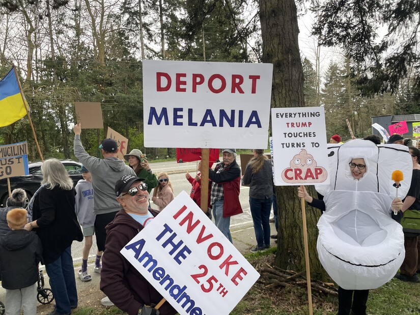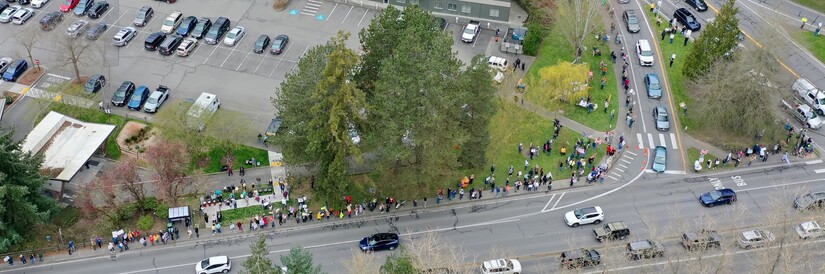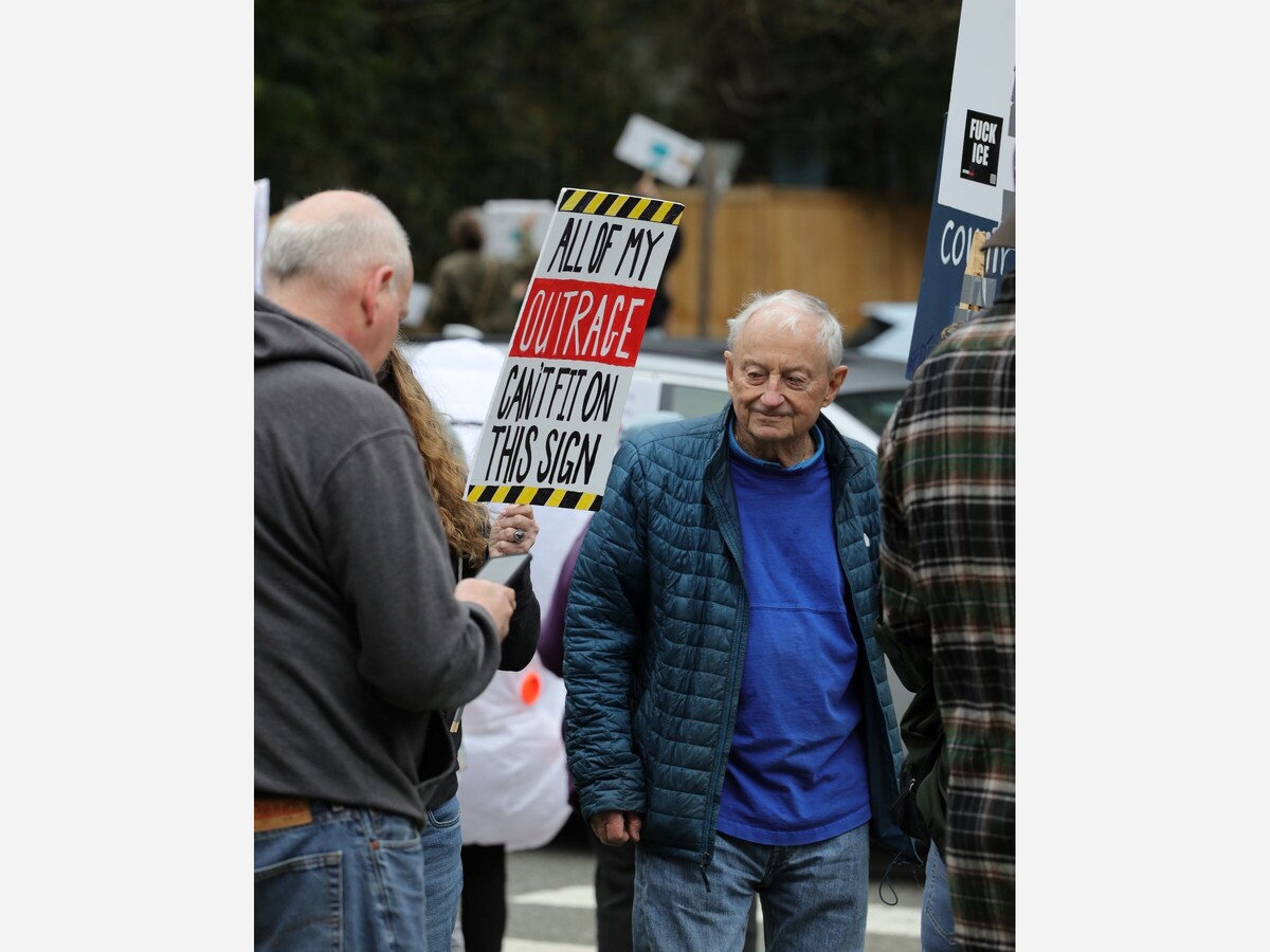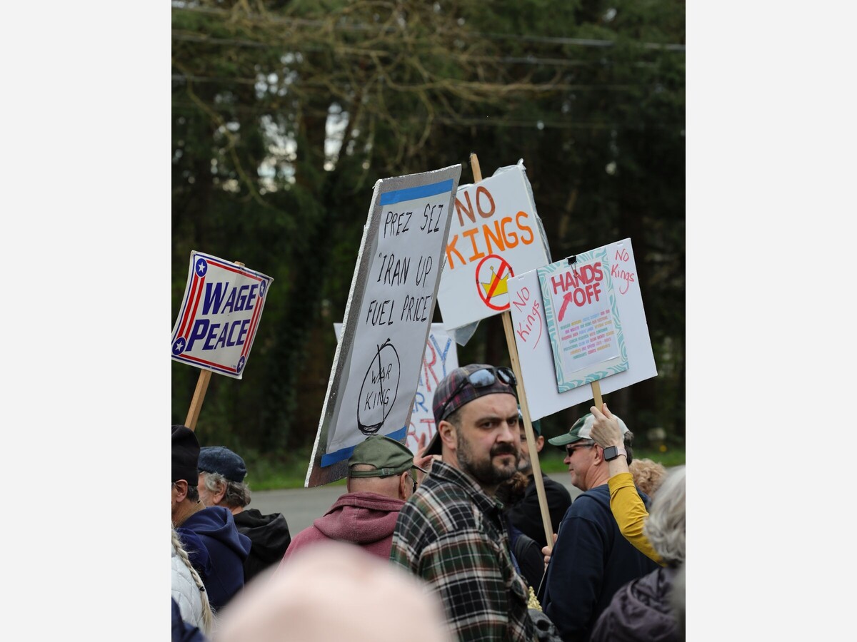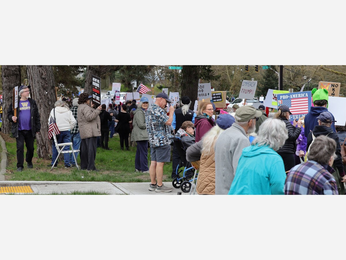 Ballinger & Bothell Way. Crowd estimated at 1,200. Photo by author.Today, an estimated 1,200 people turned out in Lake Forest Park and more than 3,300 protests took place across all 50 states and around the world, driven by opposition to what demonstrators describe as authoritarian leadership, domestic and foreign policies, and the influence of powerful elites.