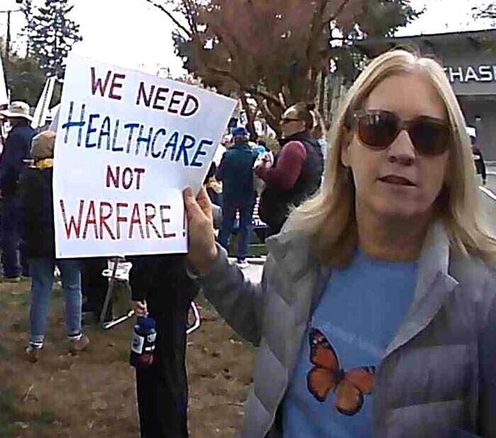 LFP resident Kim Josund. Photo by author.Organizers encouraged attendees to stay engaged beyond the rally, inviting them to join the No Kings Coalition’s upcoming mass call to build momentum and organize for future action.