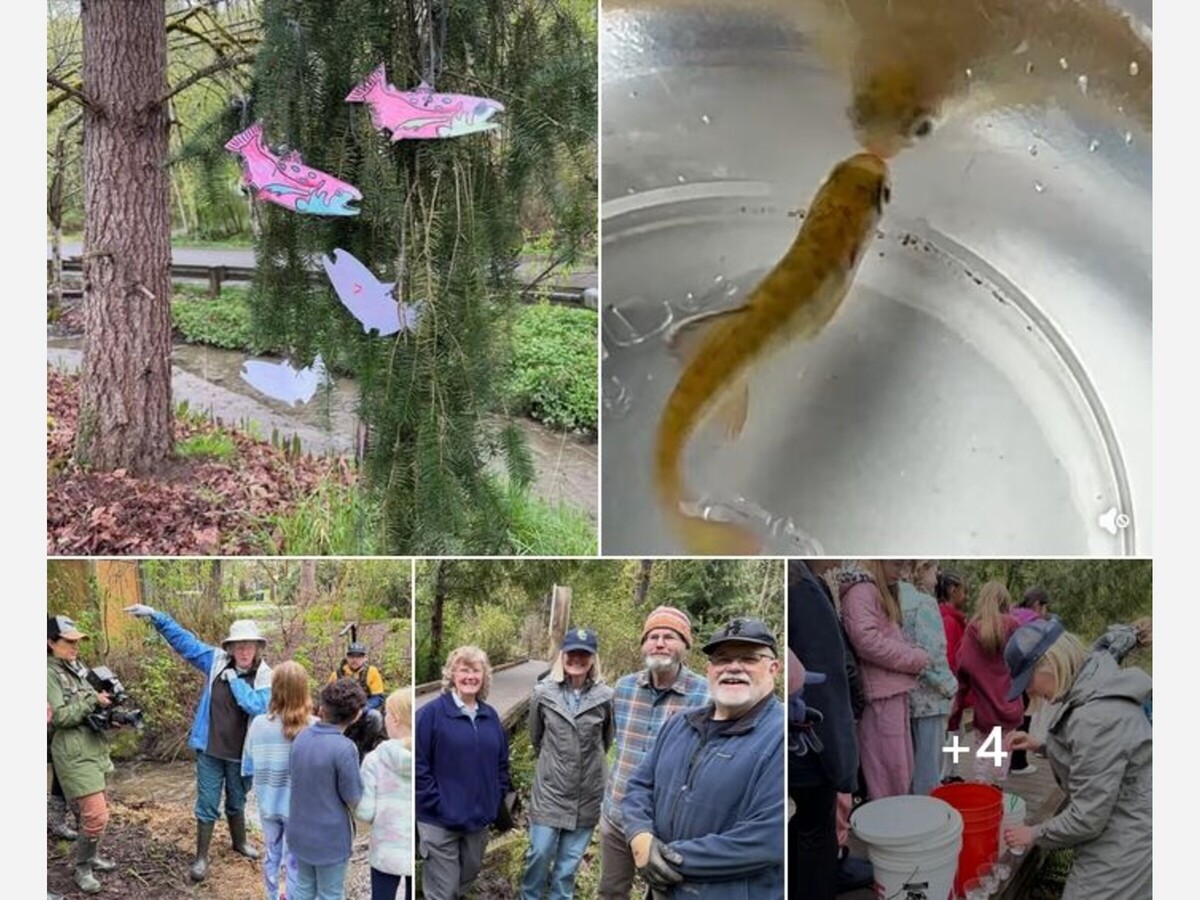 Celebrating spring salmon releases ! Two schools done, two to go. Thanks so much to the librarians/teachers who caretake the salmon tanks, the students who learn how to be good stewards and our stewardship volunteers. This year we had a film crew for Puget Sound Partnership there to document the program.